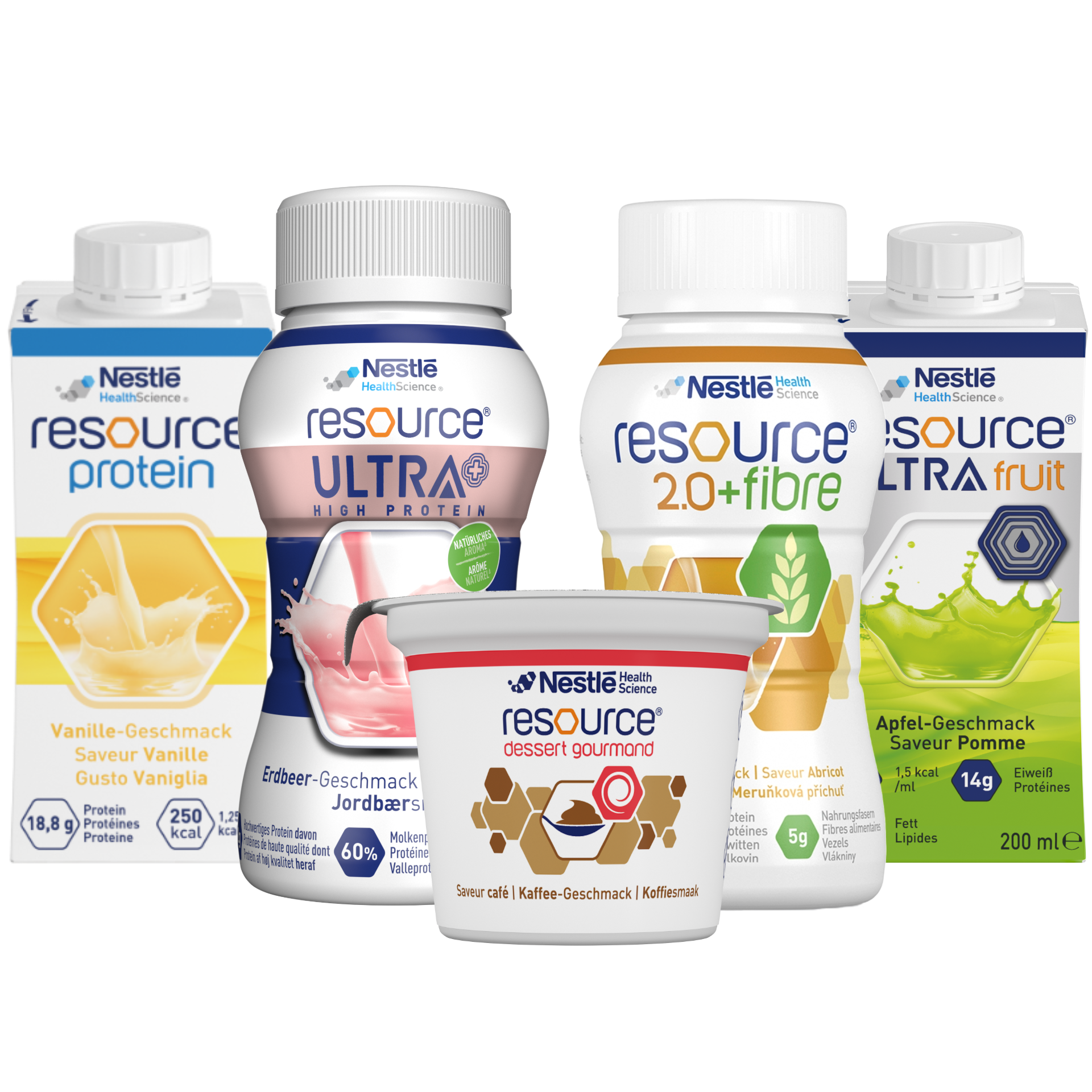 Ergänzend oder alternativ können durch den Arzt / die Ärztin spezielle Resource - Trinknahrungen vorordnet werden. Die verschiedenen Resource Trinknahrungen unterscheiden sich im Gehalt an hochwertigen Proteinen und Energie und können so zielgenau an die Bedürfnisse angepasst werden.